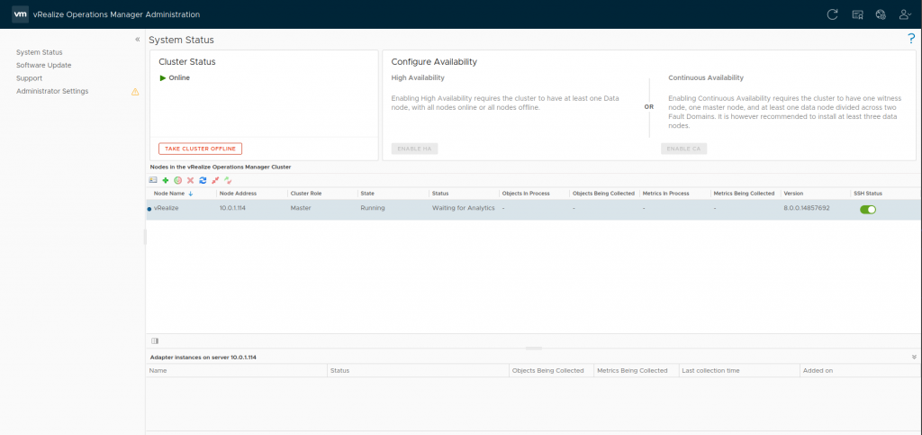 Assim que o cluster ficar online. Tente fazer login na página vROPS, deve funcionar