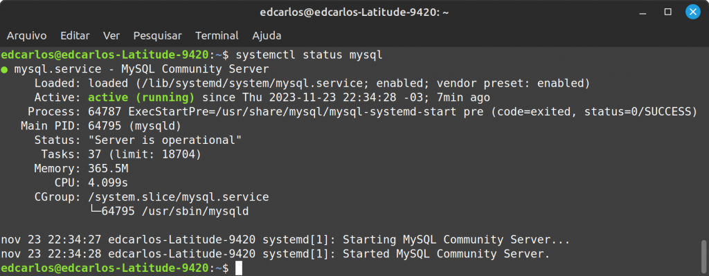 Após uma instalação bem-sucedida, você pode usar o comando abaixo para verificar o status do MySQL.