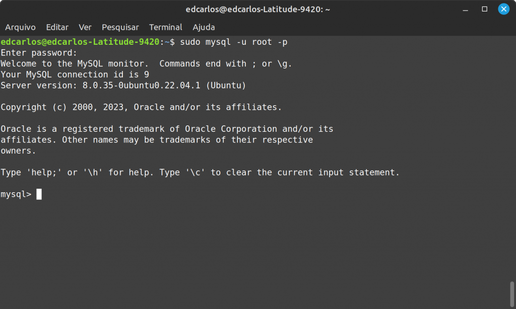 Aqui estão os passos para acessar o console do MySQL no Debian 11 e no Ubuntu 23.04: